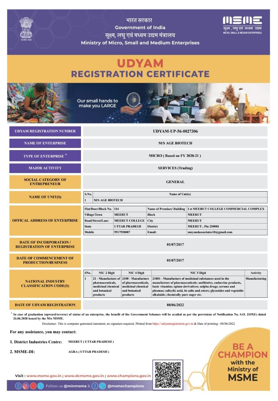 Copyrights © 2018 AGE BIOTECH, Delhi ((DELHI))