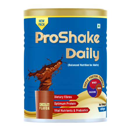 Specialities : ProShake Daily contains high protein along with essential and vital nutrients to support immunity, blood heath, easy digestion and metabolism, bone health and to maintain all day energy. 100% vegetarian source. It is a complete and balanced nutrition supplement for adult and elderly humans.